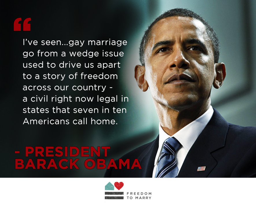 I’ve seen something like gay marriage go from a wedge issue used to drive us apart to a story of freedom across our country - a civil right now legal in states that seven in ten Americans call home.
