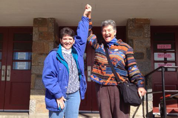 Jim and Steve have been together for thirty-seven years. They own a business together in Maine, and they've recently purchased a house in a community in Saco. "We have the same concerns that all of our straight, married friends who are couples have," the couple says in a video produced by New Left Media. "We're worried about retirement. We're worried about health care: I want to make sure that I have access to Jim. We feel very confident that Maine will give us the right to marry, and that's what we've been waiting for." We are so excited for Jim and Steve and their suspicions were correct - and that they'll now have their 37 years together fully respected by the state of Maine! The photo is of Jim and Duane on Election Day, volunteering with Mainers United for Marriage. READ THEIR STORY.