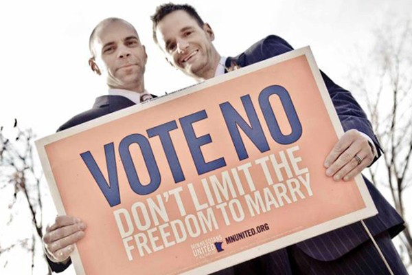 Nick and Andy have lived in Minnesota for most of their lives. They were raised in Minnesota. They went to school together at Minnesota State University, Mankato, where they met. And for the past 14 years, as they've pledged their love and commitment to each other, they've made a life together in Minnesota. They were ecstatic that the amendment was defeated on Tuesday, and they're hopeful for a day soon when all couples in the state can share in the freedom to marry. READ THEIR STORY.