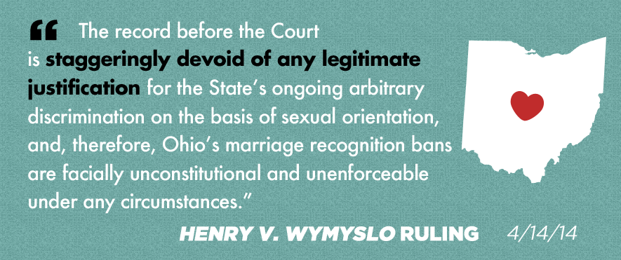 Today, as the 6th Circuit Court of Appeals hears marriage cases in six landmark cases from four different states in Cincinnati, Ohio - the three-judge panel will be considering six different District Court rulings that have enthusiastically affirmed the freedom to marry or respect for marriages performed in other states.