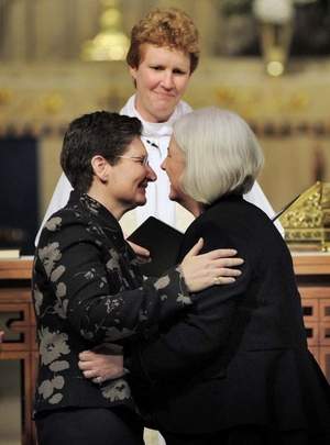The first Delaware couple to participate in the state’s new law was also two women named Lisa Goodman and Drewry Fennell. The women had a ceremony with family, friends, and colleagues at an Episcopal church on Sunday night. Goodman is president of Equality Delaware, which helped drive the civil union legislation through the state government; while Fennell is executive director of the Delaware Criminal Justice Council. Delaware Governor Jack Markell signed the civil unions bill into law in May.