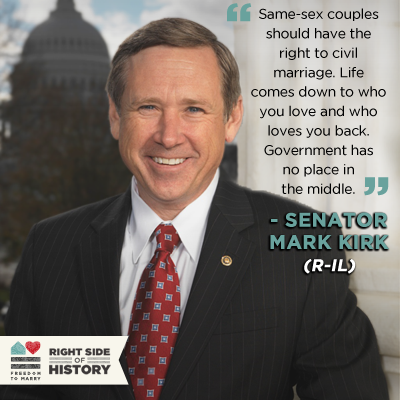 Republican Sen. Mark Kirk becomes 50th U.S. Senator to support the freedom to marry